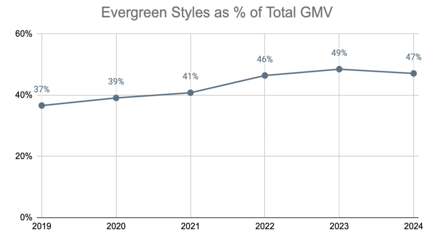 - Evergreen styles remain strong drivers and should be consistently promoted.